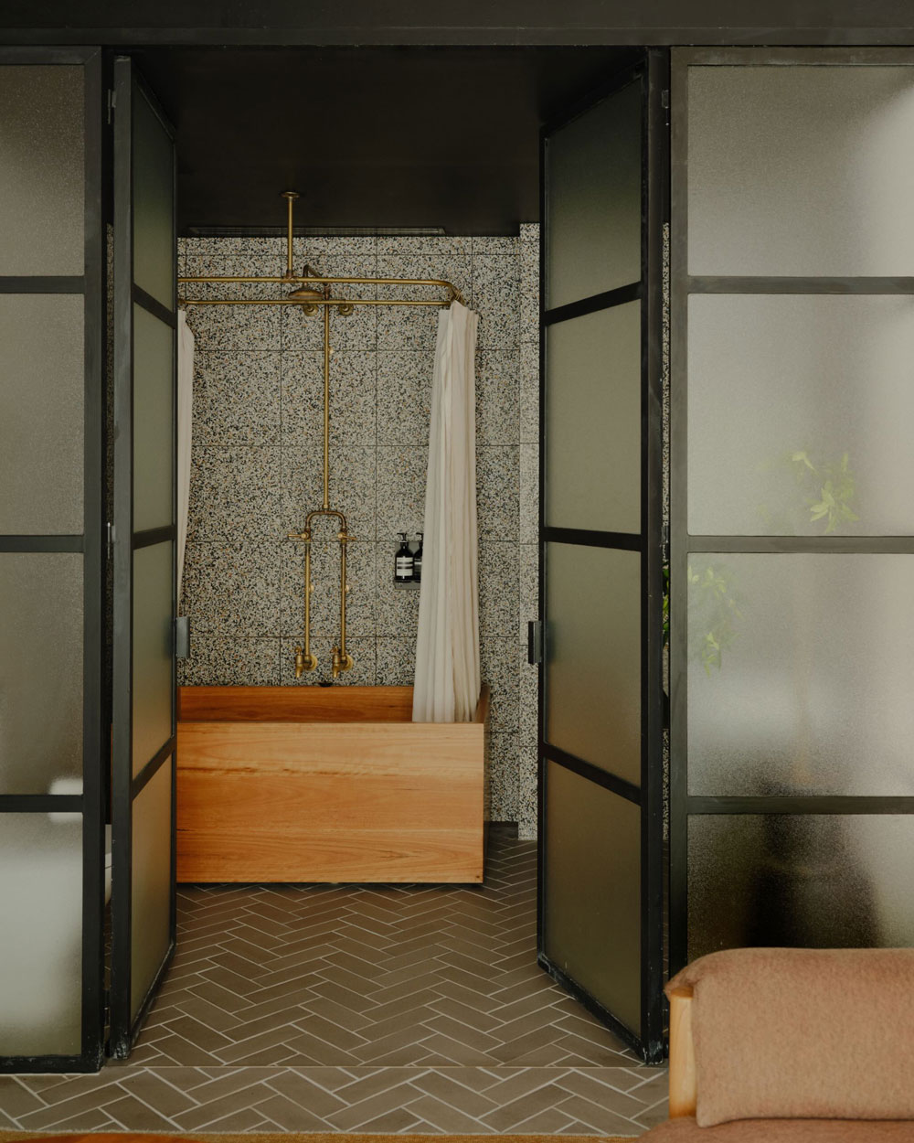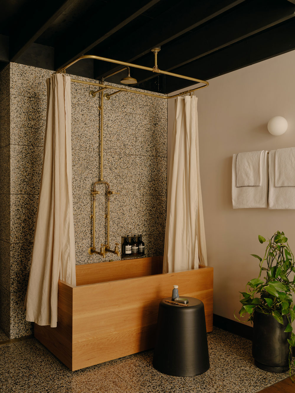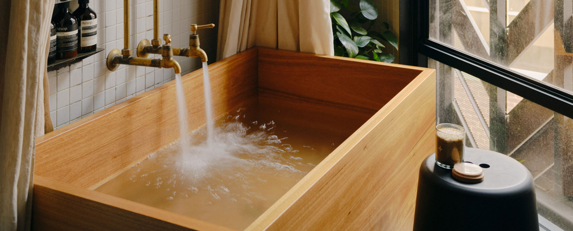 The wooden box baths at Paramount House Hotel are handcrafted, Japanese-style soaking tubs made from sustainable blackbutt timber. Found in the Loft rooms and Mack Daddy Suite, they sit in open-plan bathrooms with terrazzo tiles and copper fittings. The tubs are deep but compact, best suited for upright soaking rather than stretching out. They’re praised for their elegant design and are part of the hotel’s warm, industrial-chic aesthetic, complemented by high-end touches like Aesop bath products and locally made furnishings.