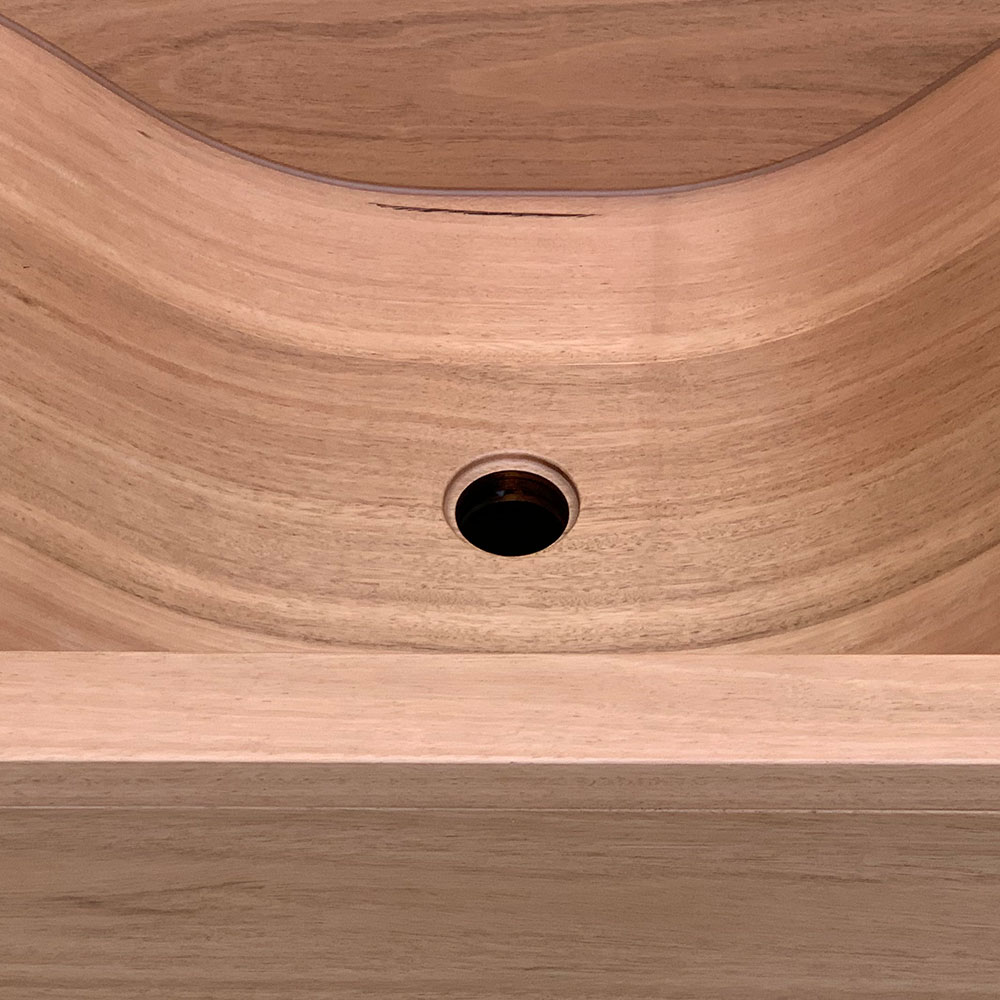 Every timber basin is custom-built to suit your space, shaped to highlight the natural variations of the wood’s grain and form. No two pieces are ever the same, giving your bathroom a truly individual feature.